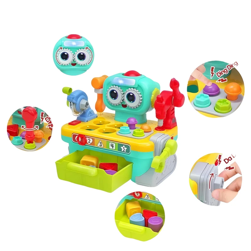 - به همراه میز ابزار، آچار، چکش، پیچ گوشتی
