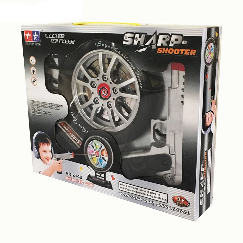 به جای استفاده از گلوله ساچمه ای از اشعه ای به نام اینفرارد استفاده کرده است و کارایی این تفنگ به این صورت است که اگر تیر شما به صورت صحیح به سیبل بخورد ، موزیک پخش می شود و افکت های صوتی از خود بروز می دهد که برای کودکان بسیار جذاب میباشد.