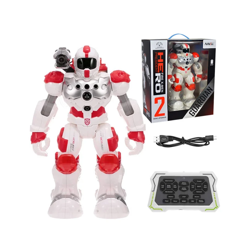 ربات ها الان جز جدا نشدنی از زندگی هستند ،ربات ها هم از لحاظ تکتولوژی کودک را آموزش می دهد هم یک سرگرمی مناسب برای بچه هاست. اگر کودک شما علاوه به ربات علاقه دارد پیشنهاد ما به شما ربات هوشمند ربات کنترلی مدل آتشنشان آبپاش NWELL است. این ربات تجربه واقعی از داشتن یک آتش نشان درخانه است. این اسباب بازی ربات یک هدیه عالی برای پسران و دختران شماست. ربات کنترلی مرد آتش نشان به دلیل هوشمندی و و زیبایی در طراحی یک هدیه عالی برای بچه های دختر و پسر 5 سال به بالا می باشد. اسباب بازی ربات هوشمند آتش نشان یک ربات کنترل کننده رادیویی قابل برنامه ریزی است که پیوسته شلیک می کند می تواند در هر جهت حرکت کند، برقصد و به آب شلیک کند (یک جریان را شلیک می کند) به دلیل وجود سنسورهای داخلی، اسباب بازی به حرکات واکنش نشان می دهد. چشمان او با نور پس زمینه تعامل دارند. جلوه های نور و صدا وجود دارد. ربات فایر با استفاده از ریموت کنترل از راه دور کنترل می شود. این اسباب بازی راه می رود و به جلو، عقب، راست، چپ حرکت می کند ومی رقصد و آواز می خواند .سر و بازوهای این ربات در حال حرکت است. دارای مانیتورهای چشمی تعاملی و جلوه های نور و صدا است. نوع کنترل در این اسباب بازی رادیویی است و نیاز به دو عدد باتری دارد. برد عملکرد کنترل 40 متر است. بازی با ربات باعث تقویت هوش فضایی و هوش منطقی ریاضی و توانایی ادراک فضا و فواصل، تخیلات و تفکرات کودک می شود. این ربات از مواد با کیفیت بالا ساخته شده است.