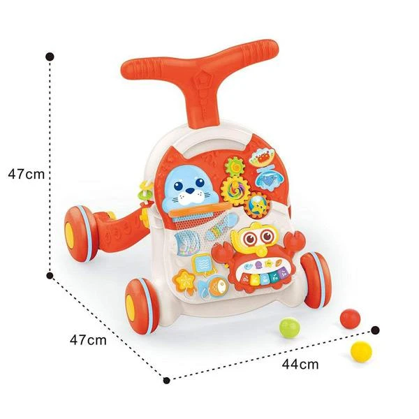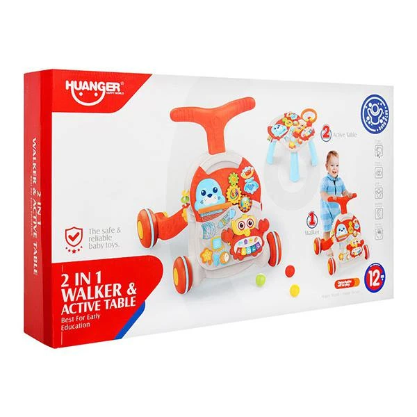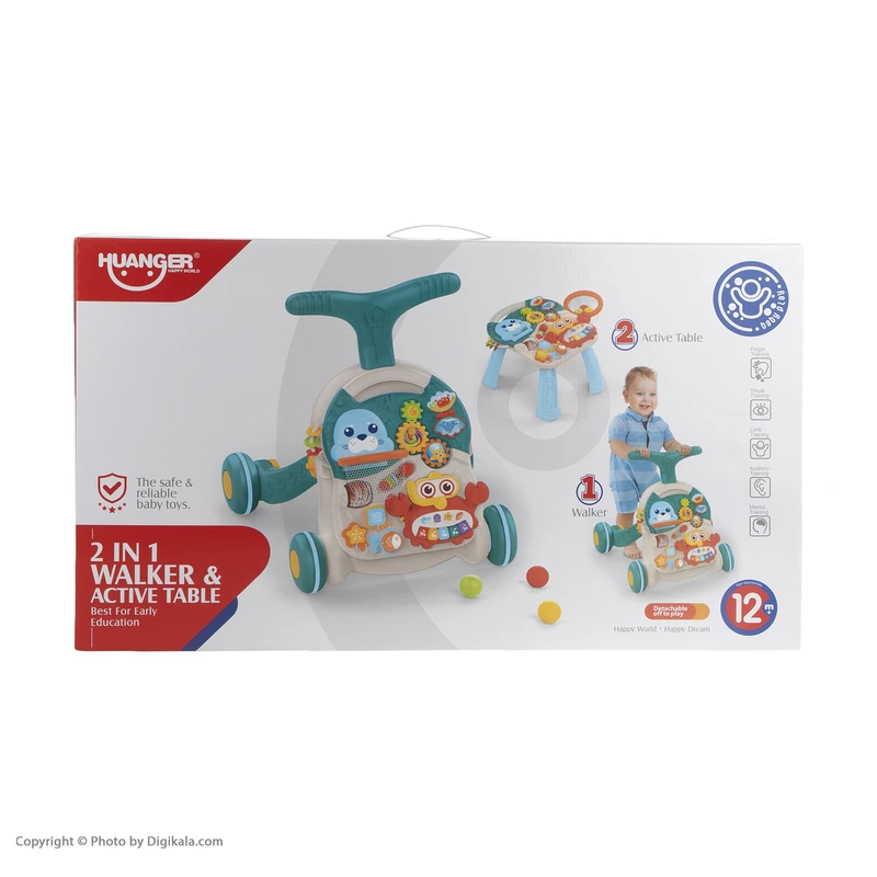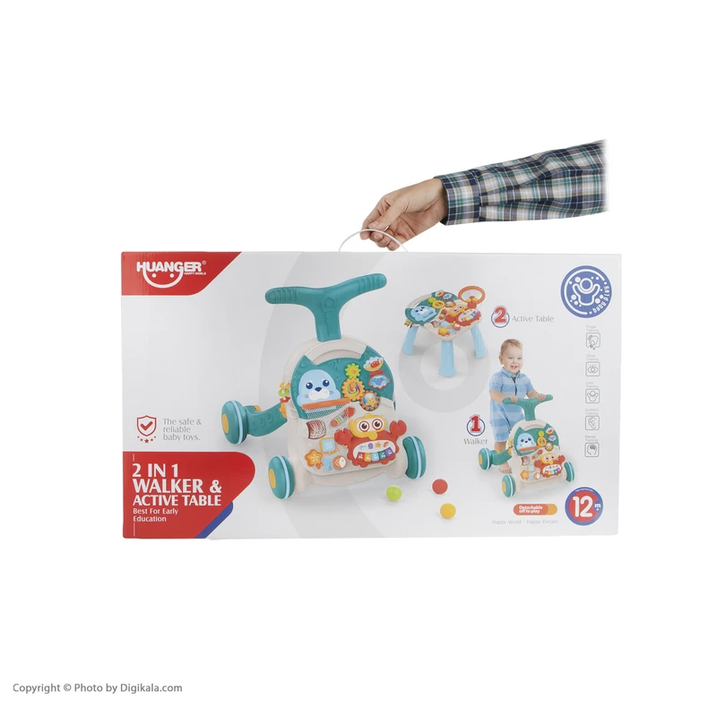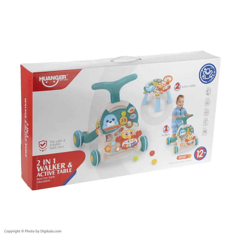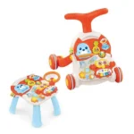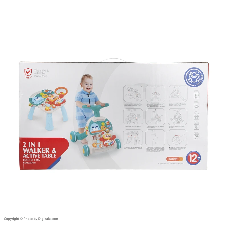 این نوع واکر دارای دو کاربرد در یک محصول میباشد . با استفاده از این محصول کودک راه رفتن در در چند مرحله یاد می گیرد مرحله اول کودک به خاطر جذابیت دستگاه تشویق می شود که با استفاده از آن بایستد و کودک با فشار دادن واکر به جلو ، شروع یادگیری اولیه ایستادن و راه رفتن می کند. که دسته قابل تنظیم و موجدار ، تنظیم سرعت و ساختار مثلثی، مراحل آموزش کودک شما را ایمن می کند. این محصول قابل استفاده به صورت واکر و قابل استفاده به صورت میز بازی کودک میباشد. در این محصول یک تور بسکتبال تعبیه شده است که کودک می تواند در سنین بالاتر با آن بازی کند و به اینصورت . روی میز بازی آن یک تور پرتاب توپ وجود دارد که علاوه براینکه کودک با انجام این بازی شاد میشود تمرکز و مهارت های جسمی و حرکتی او نیز رشد می یابد. .روی میز بازی این محصول یک جعبه موزیکال آموزشی نیز هست که قابلیت جدا شدن از میز را دارد.