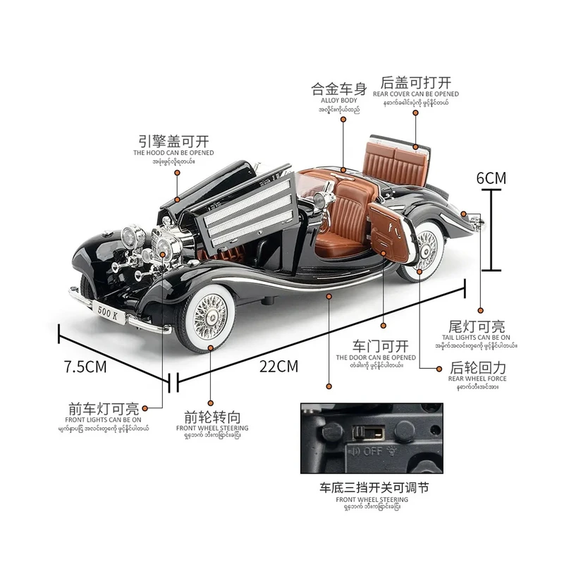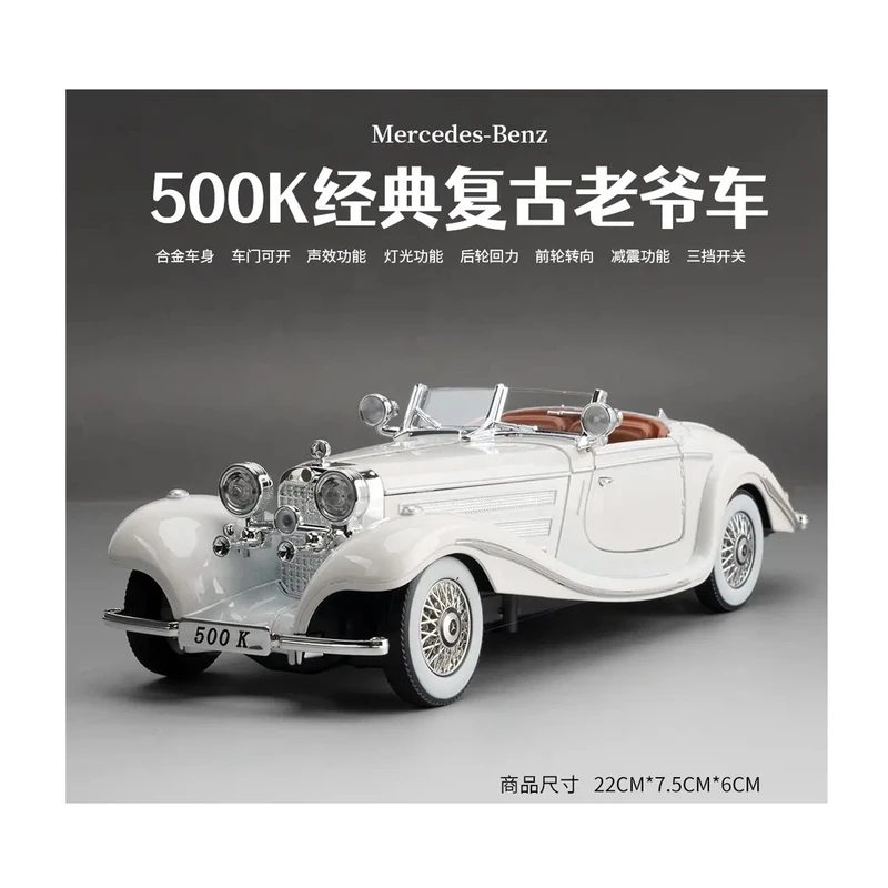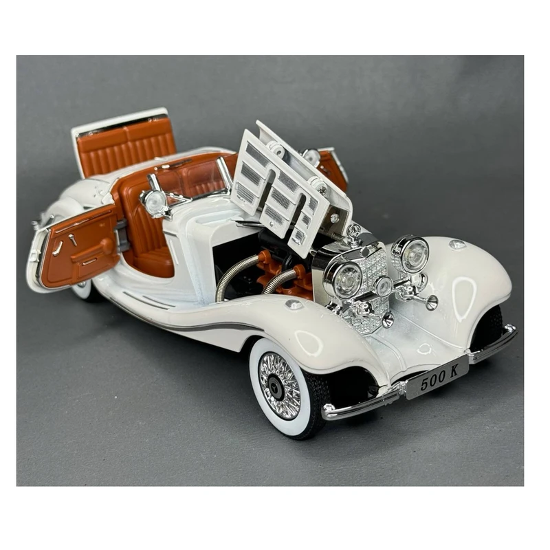 ماکت ماشین مرسدس بنز K500 یکی از زیباترین و با ارزشترین هدیه برای کلکسیونرها و جوانان علاقمند به ماشین های خاص است دارای قابلیت باز شدن درهای ماشین و در موتور و عقب میباشد وبا فشردن روی ماشین صدای زیبای استارت و روشن شدن و ترمزها را بهمراه روشن شدن چراغهای جلو و عقب و با فشردن فرمان صدای بوق و دزدگیر را دارد همچنین فنرهای انعطاف پذیر و چرخش چرخهای جلو به چپ وراست بصورت دستی را داردو سیستم حرکتی آن عقبکش میباشد